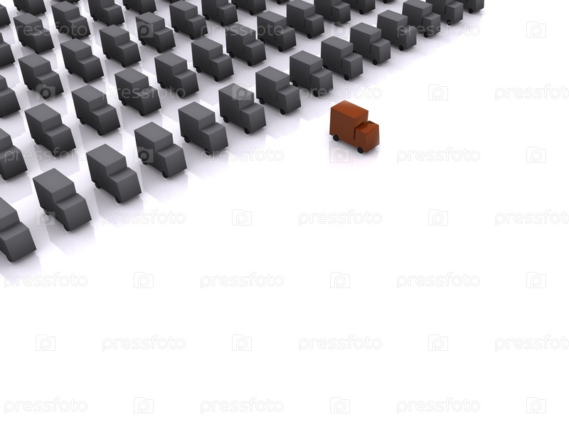Трехмерные грузовики с красным во главе