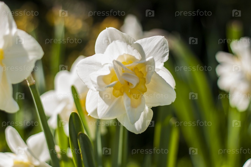 нарциссы в цветочной клумбе