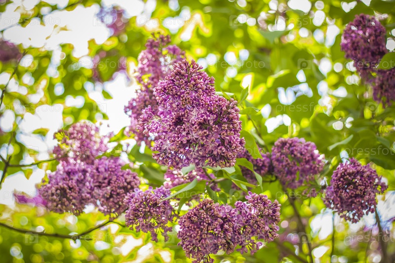 Красивая и ароматная сирень в саду. Крупный план с копией пространства на фоне природного ландшафта. Натуральные обои. Выборочный фокус