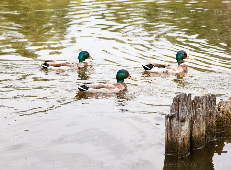 Три утки плавают в пруду