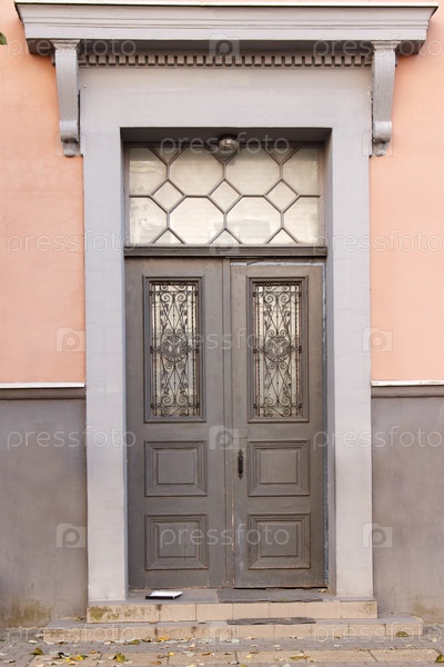 Старая деревянная дверь на улице города. осенний день крупным планом
