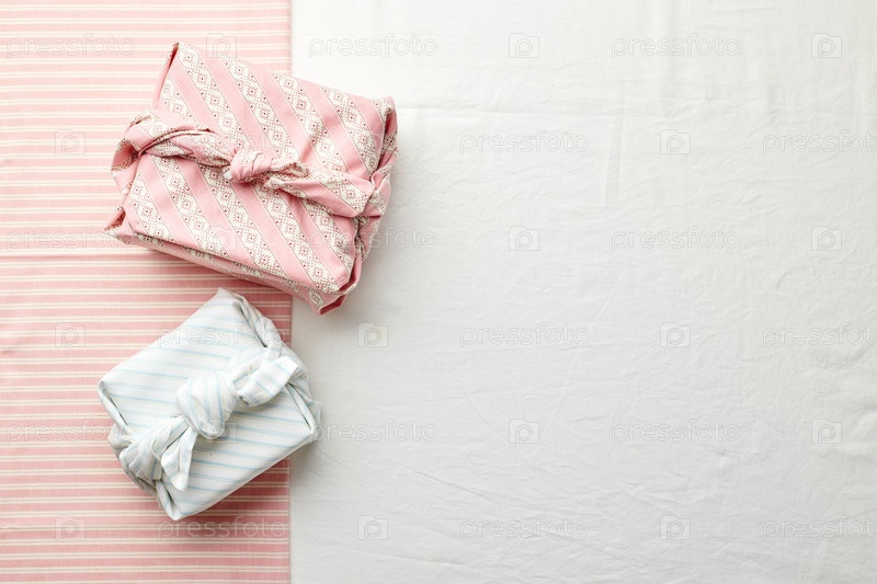Экологичная подарочная упаковка в традиционном японском стиле фурушики, экологическая подарковая упаковка и концепция Zero Wast