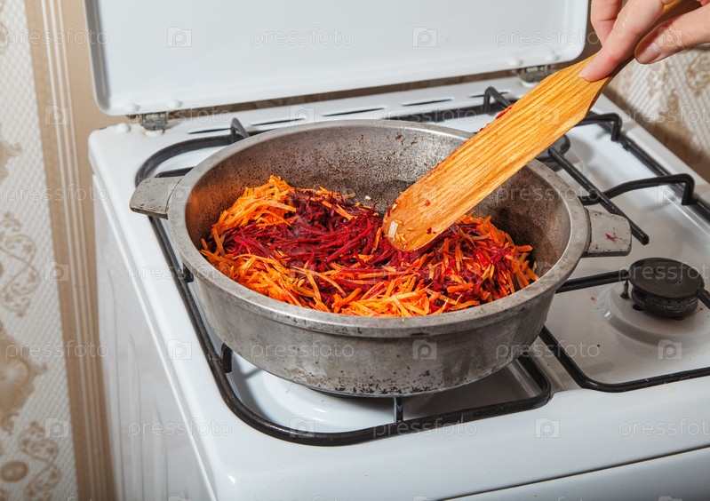 Обжариваем на сковороде морковь и свеклу