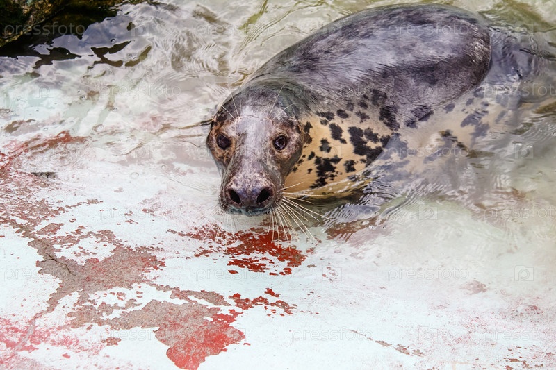 Тюлень в воде у берега