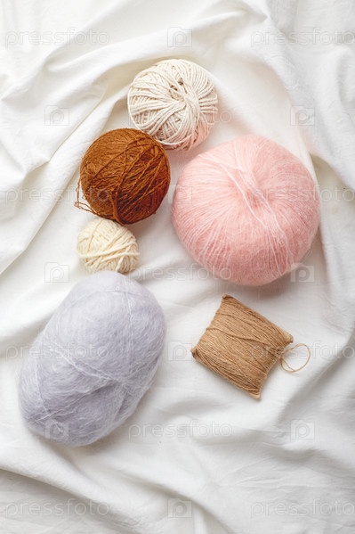 Шарики из шерсти и мохера для вязания в пастельных тонах