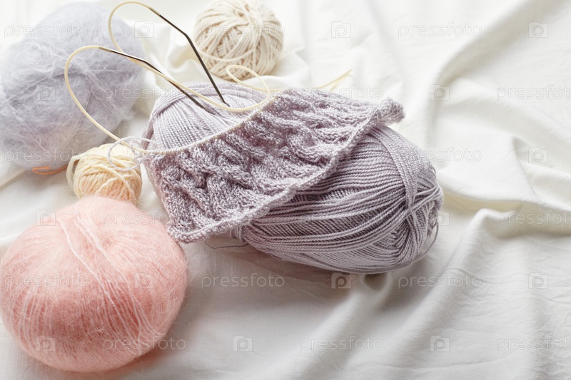 Шарики из шерсти и мохера для вязания в пастельных тонах