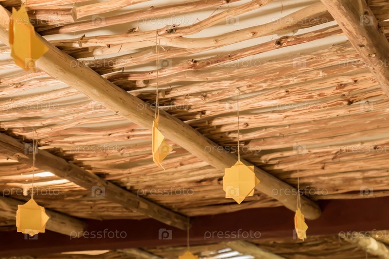 Украшение оригами висит над потолком в восточной комнате