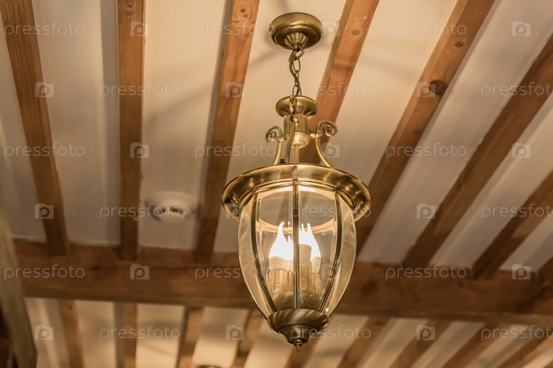 Винтажная люстра из стекла и металла на потолке, вид снизу
