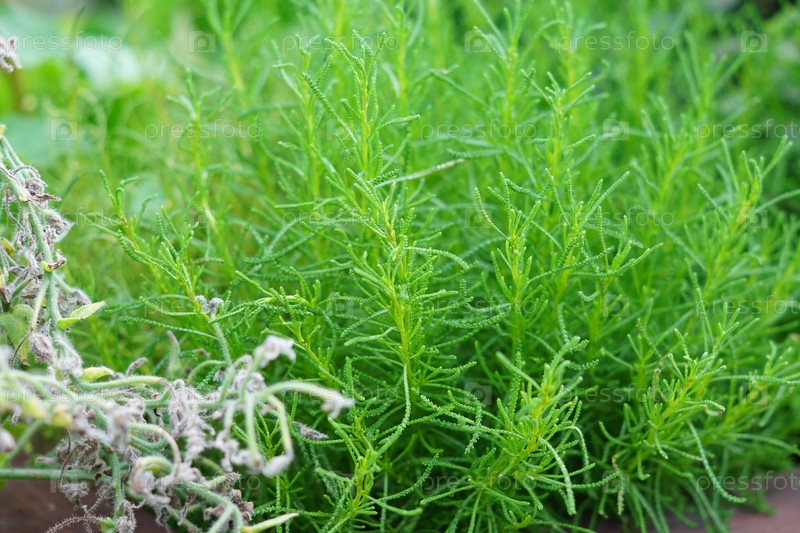Крупный план растущего растения розмарина. Пряная трава для кулинарии и аромата