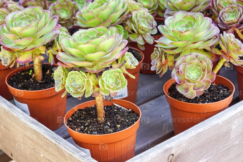 Продаются суккуленты эхеверии в пластиковом горшке. магазин наружных витрин