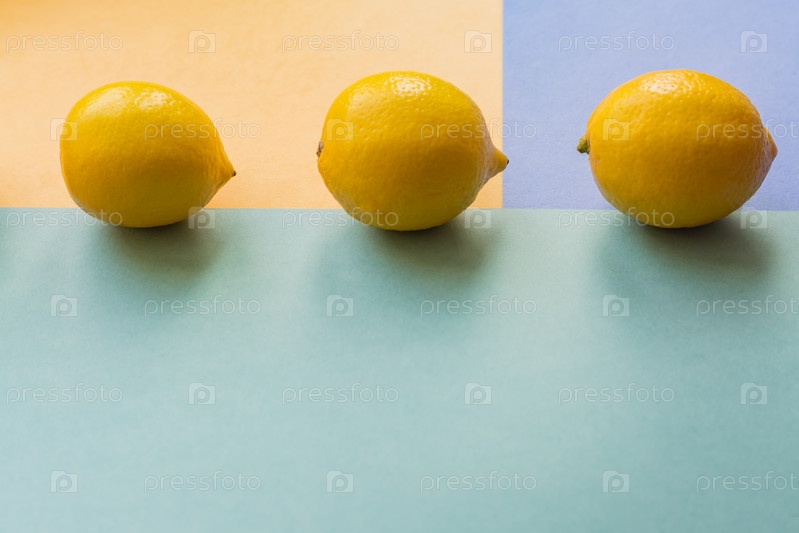 Три лимона на красочном оранжевом, синем и зеленом фоне,