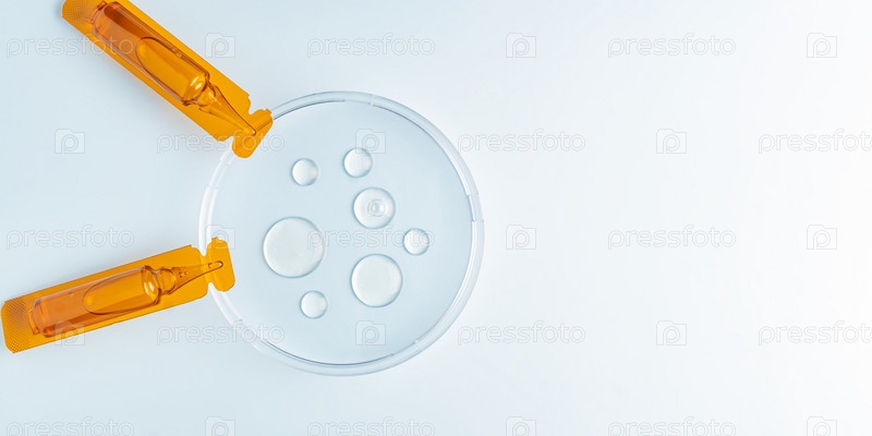 Косметические ампулы с сывороткой для роста волос, восстановления. Концепция красоты волос, уход за собой и хорошее самочувствие. Плоская укладка. Скопируйте пространство. Баннер