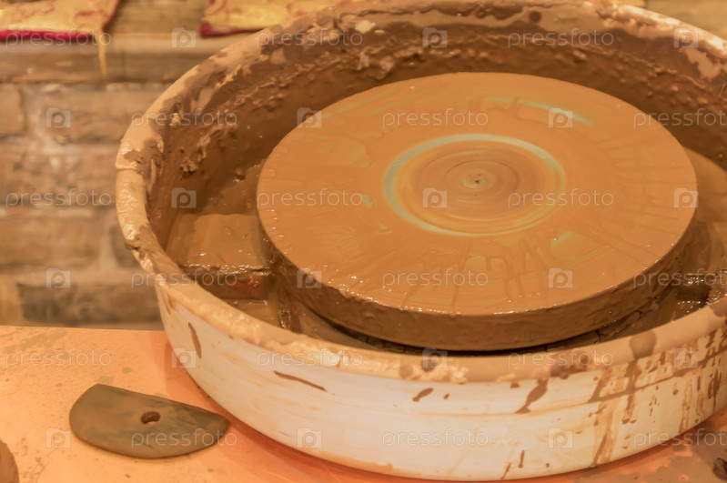 Крупный план грязного гончарного круга после работы