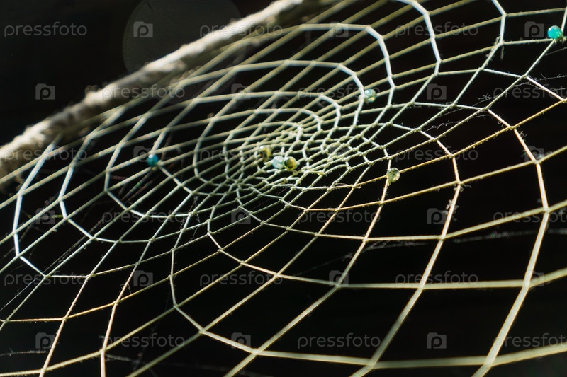 Крупный план ловца снов с бирюзовыми и желтыми бусинами