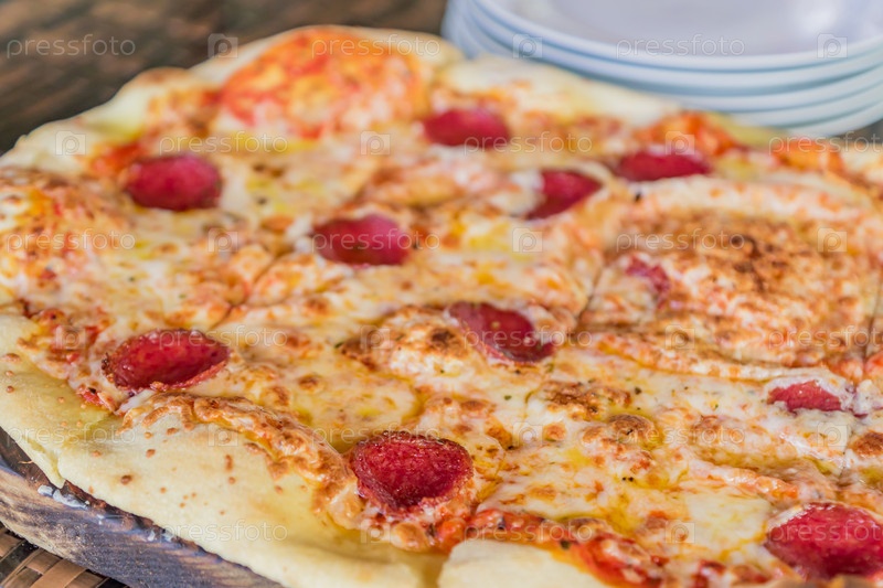 Крупный план пиццы пепперони на деревянном столе