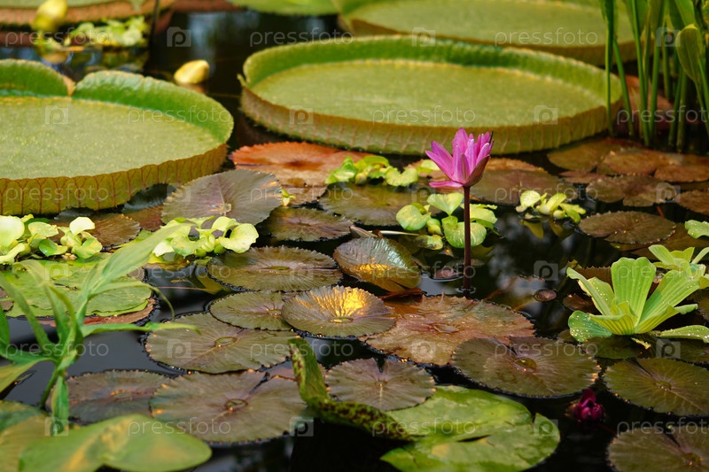 Красивая розовая кувшинка, плавающая на поверхности воды