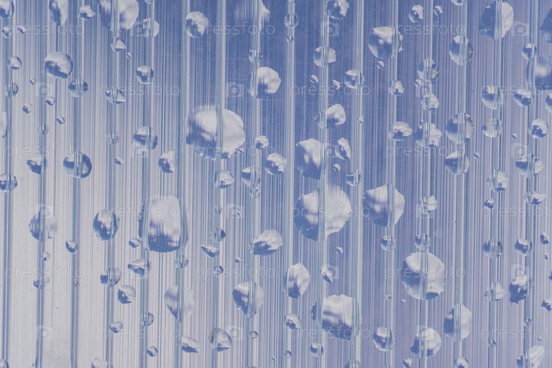 Прозрачный поликарбонатный пластиковый лист с каплями, фоновая текстура с пространством для текста
