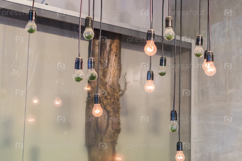 Детали интерьера лофт. подвесные светильники с подсветкой