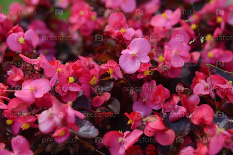 Красивые ярко-розовые цветы бегонии цветут в саду, естественный узор цветочный ботанический фон, весна, летний сезон