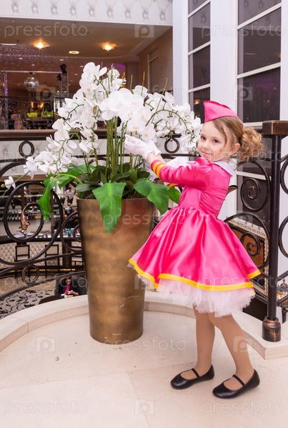 Радостная девочка в красивом модном платье