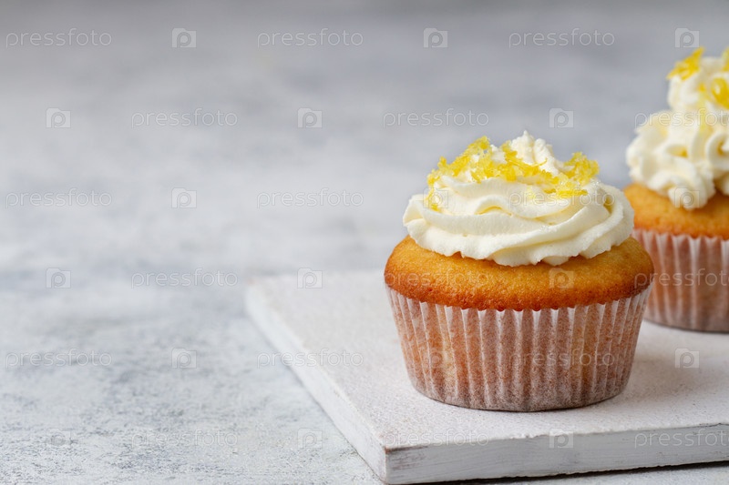 Кекс с лимоном крупным планом, пространство для копирования