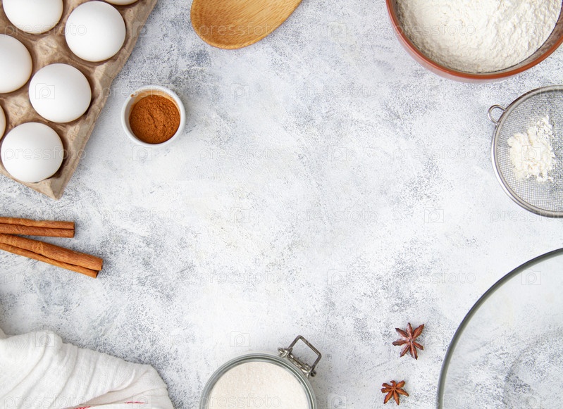 Макет с ингредиентами для выпечки и местом для копирования, шаг 1/9