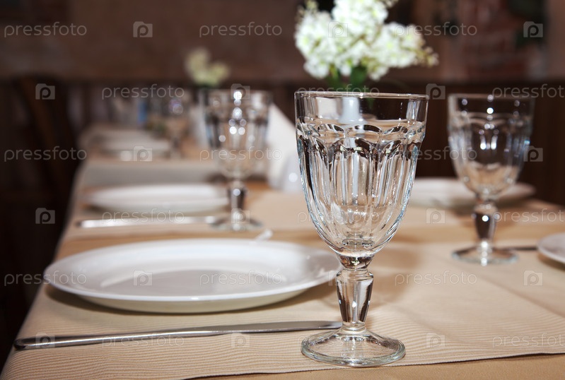 Стаканы и тарелки на столе