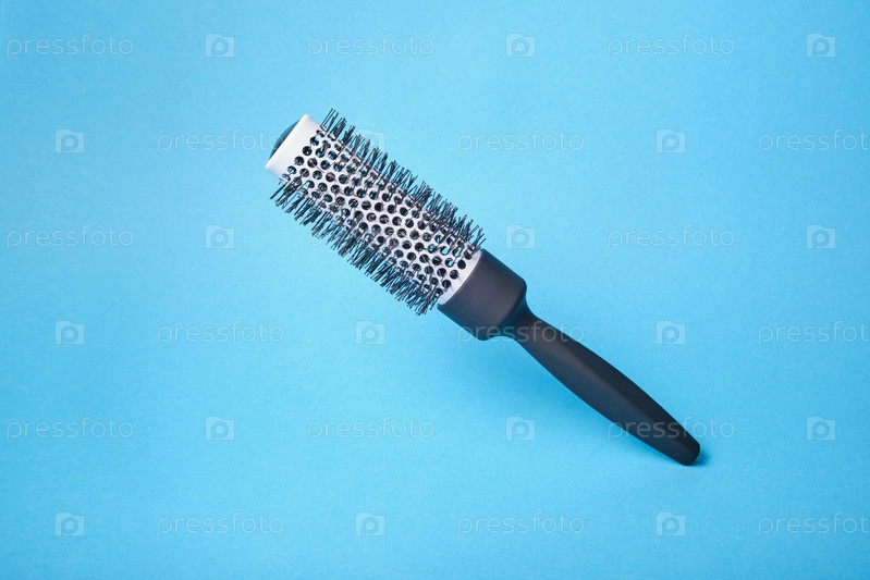 Черная летающая щетка для волос на синем фоне