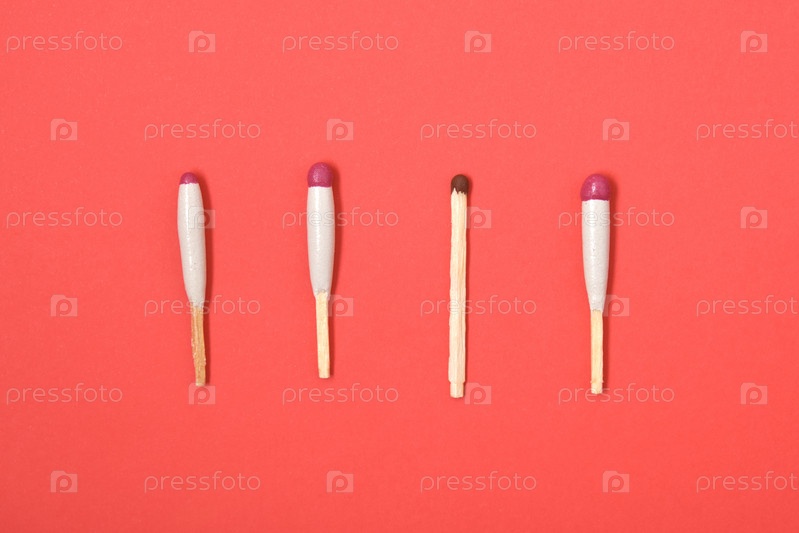 Водонепроницаемые спички и простая спичка на красном фоне