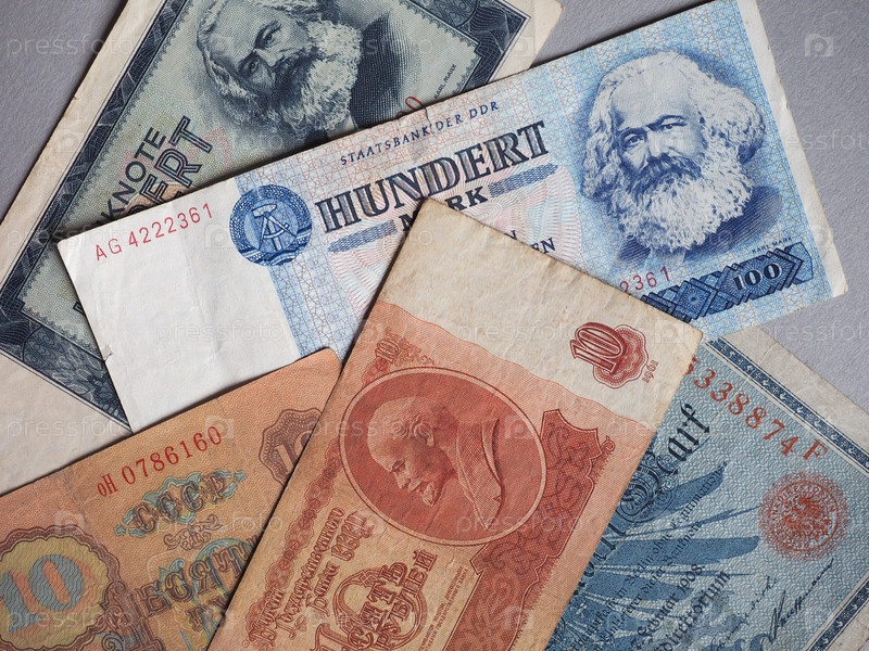 Винтажные изъятые банкноты Советского Союза, Германской Демократической Республики и Германской империи