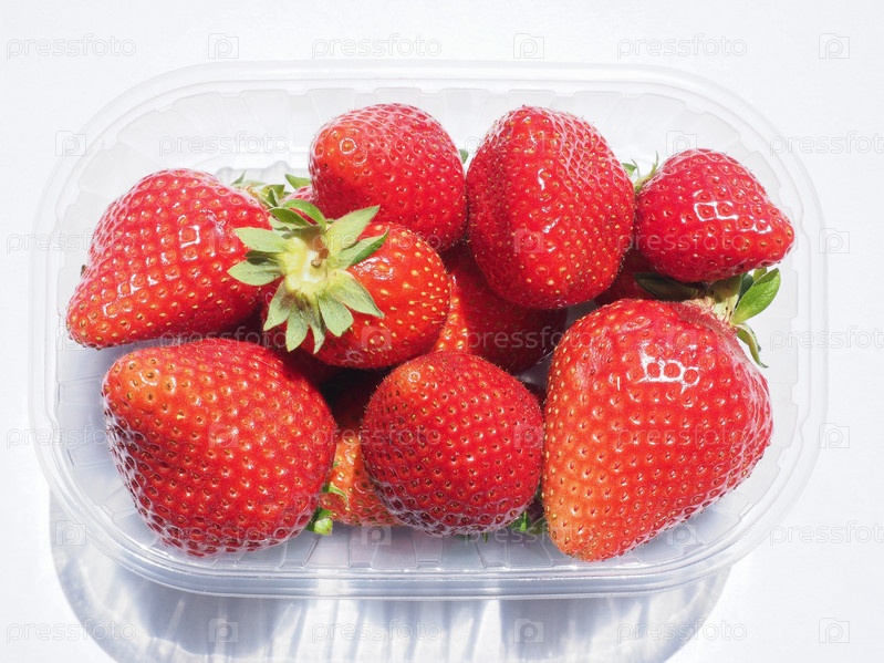 Коробка большой клубники на белом фоне