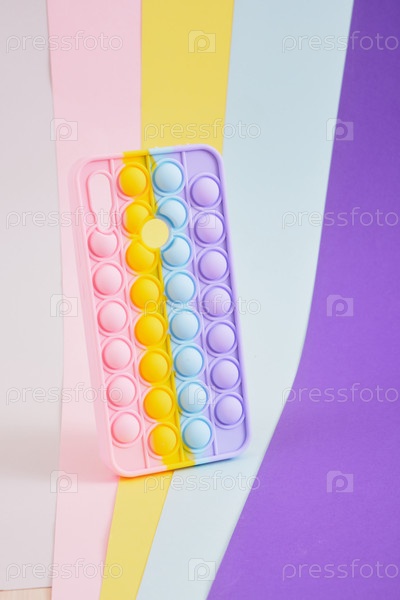 Красочный яркий чехол для смартфона в виде модной модной антистрессовой игрушки лепи его на разноцветном фоне
