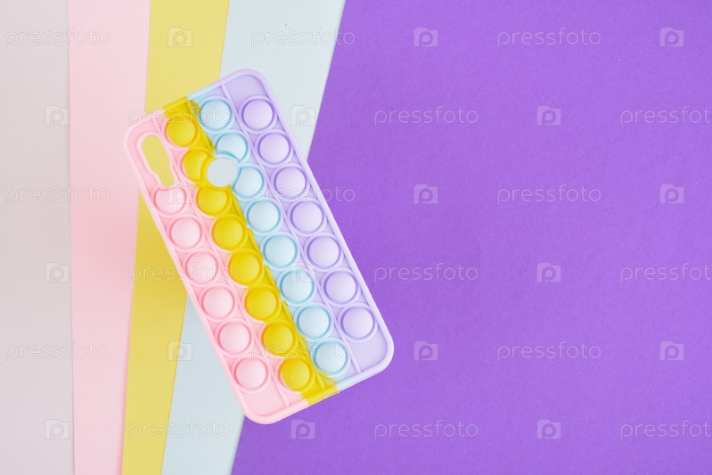 Красочный яркий чехол для смартфона в виде модной модной антистрессовой игрушки лепи его на разноцветном фоне