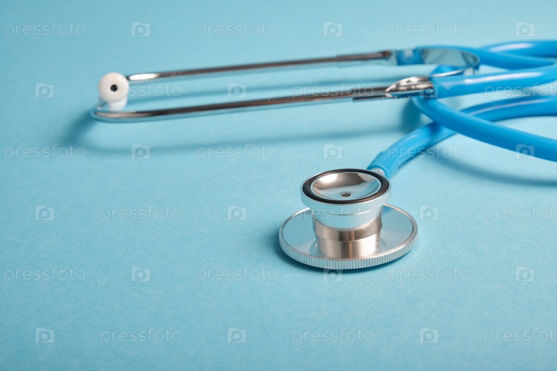 Медицинский стетоскоп на синем фоне, место для копирования, фонендоскоп для диагностики заболеваний