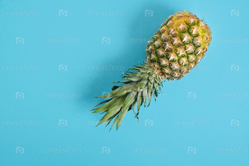 Ананас на синем фоне. летняя концепция. копировать пространство, минимализм