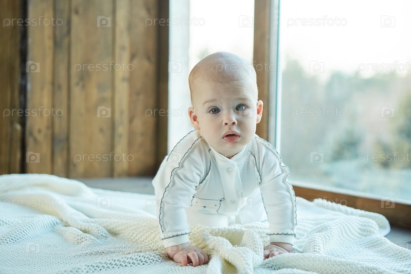 Маленький мальчик лежит на поверхности