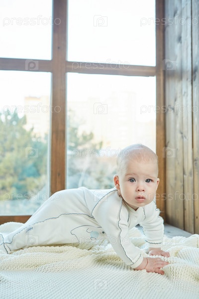 Маленький мальчик лежит на поверхности
