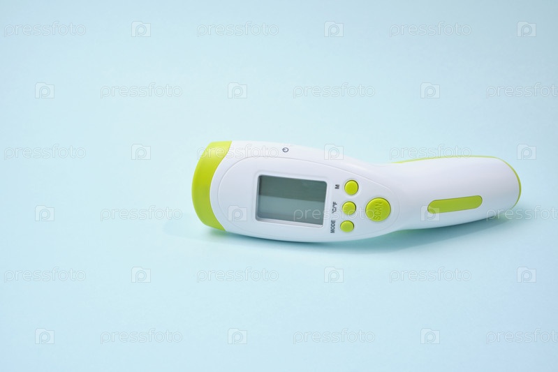 Цифровой медицинский инфракрасный термометр для лба бесконтактный для измерения температуры, для тестирования COVID на синем фоне