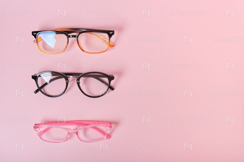 Несколько разных стаканов на розовом фоне