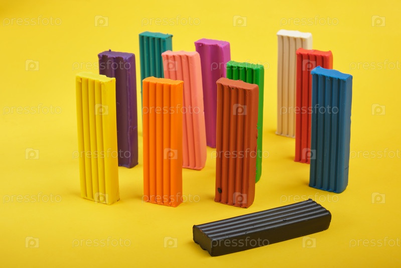 Цветной пластилин на желтом фоне