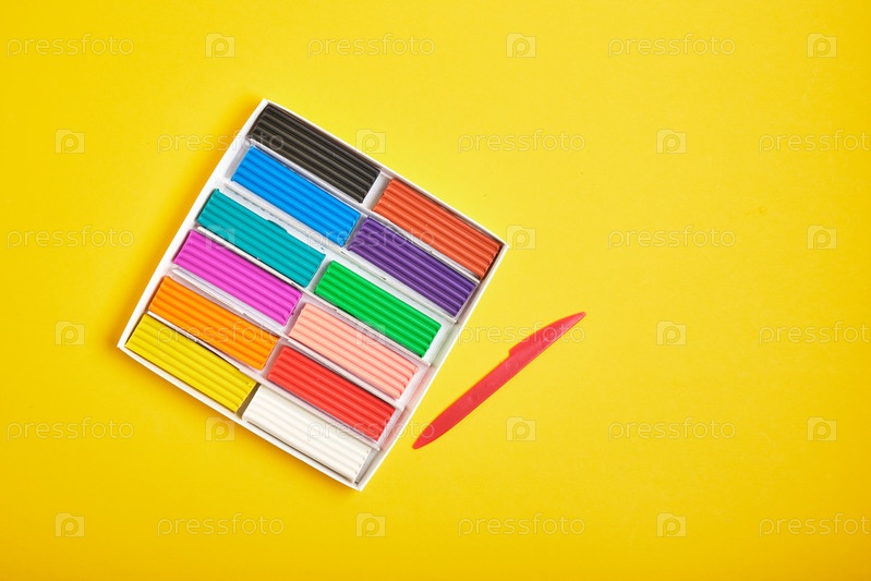 Цветной пластилин на желтом фоне