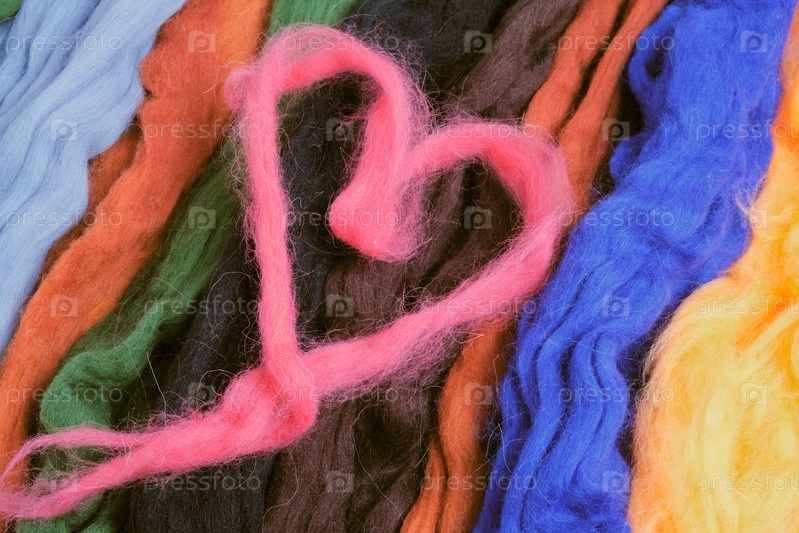 Сердце из шерсти на фоне валяния шерсти в виде линий