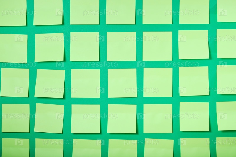 Много светло-зеленых заметок на зеленом фоне, мозговой штурм и концепция совместной работы