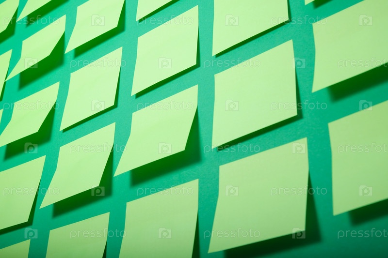 Много светло-зеленых заметок на зеленом фоне, выборочный фокус