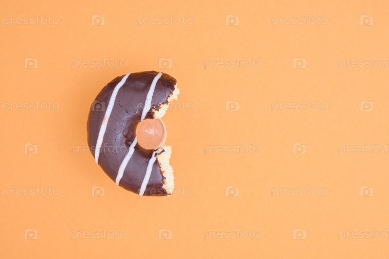 Пончик с шоколадной глазурью на коричневом фоне