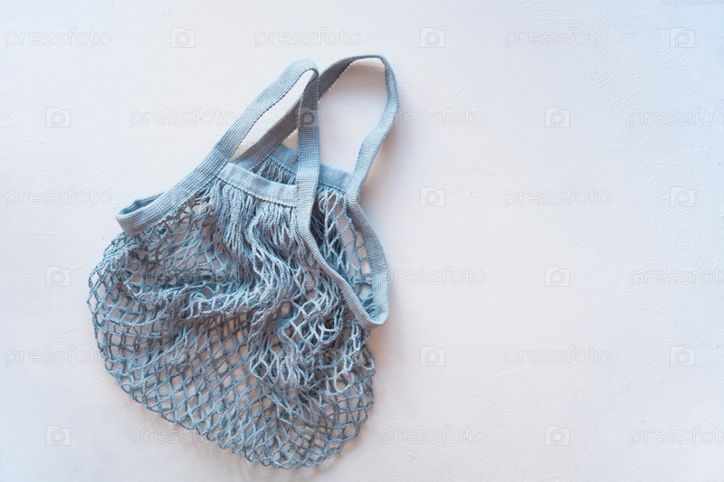 Сетчатые вязаные экологические сумки для покупок на светлом фоне, экологически чистый образ жизни, концепция нулевых отходов