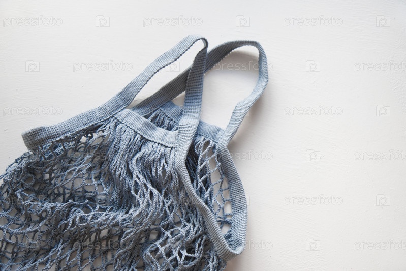Сетчатые вязаные экологические сумки для покупок на светлом фоне, экологически чистый образ жизни, концепция нулевых отходов