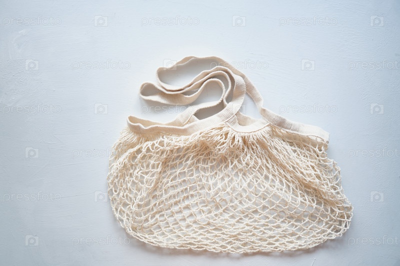 Сетчатые вязаные экологические сумки для покупок на светлом фоне, экологически чистый образ жизни, концепция нулевых отходов