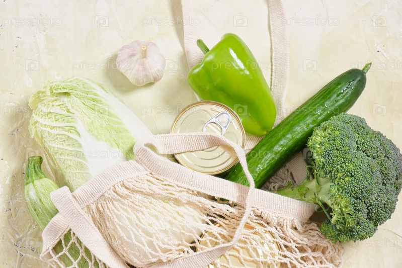 Свежие овощи в экологически чистой многоразовой сумке для покупок. Безотходный образ жизни Концепция без пластика Здоровая пища в сетчатом мешке