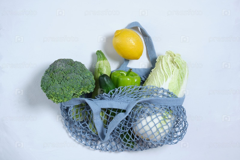 Свежие овощи в экологически чистой многоразовой хозяйственной сумке Покупки продуктов с эко-сумкой. Концепция устойчивого и экологически чистого образа жизни